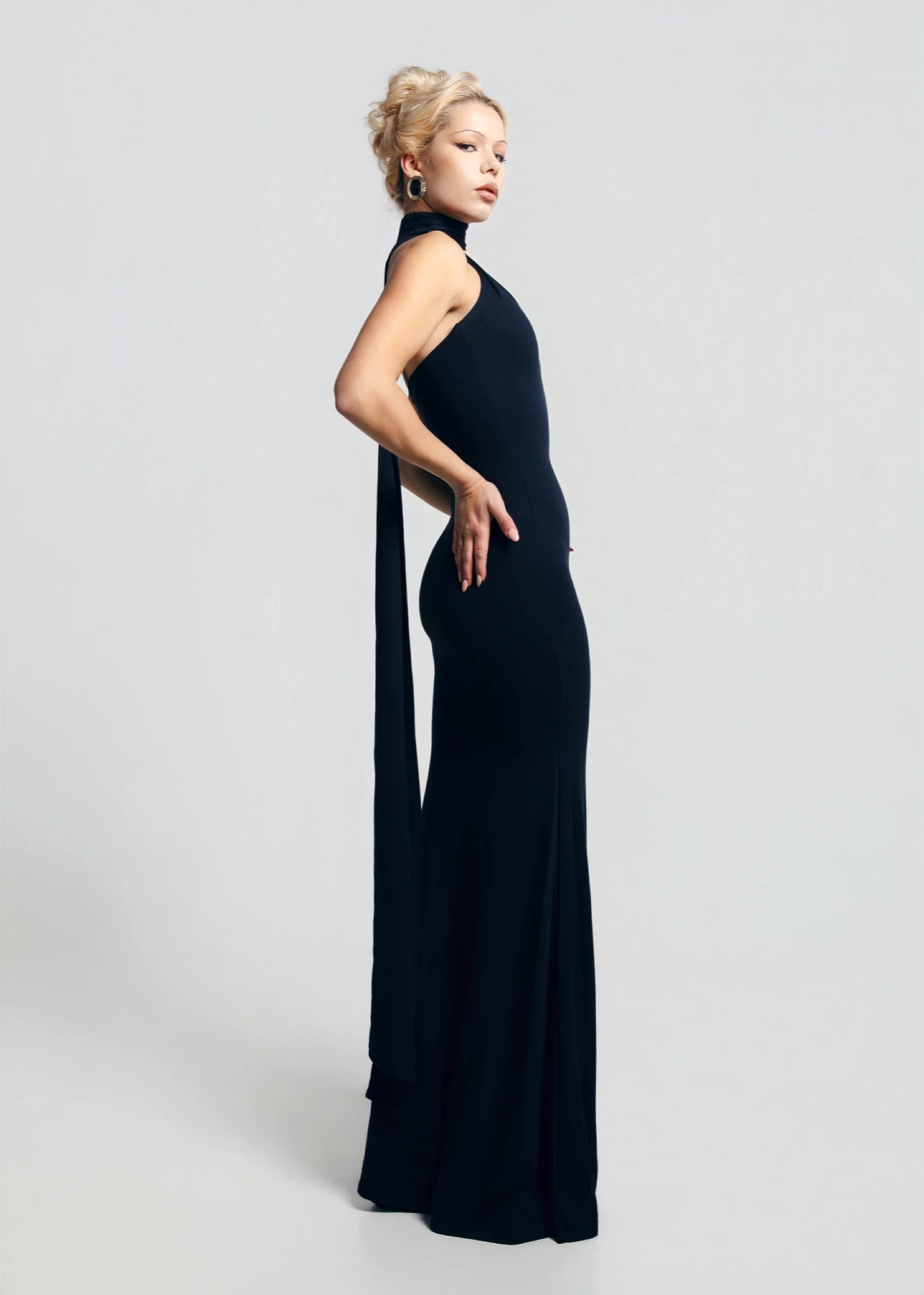 BACKLESS DRAPED MAXI DRESS