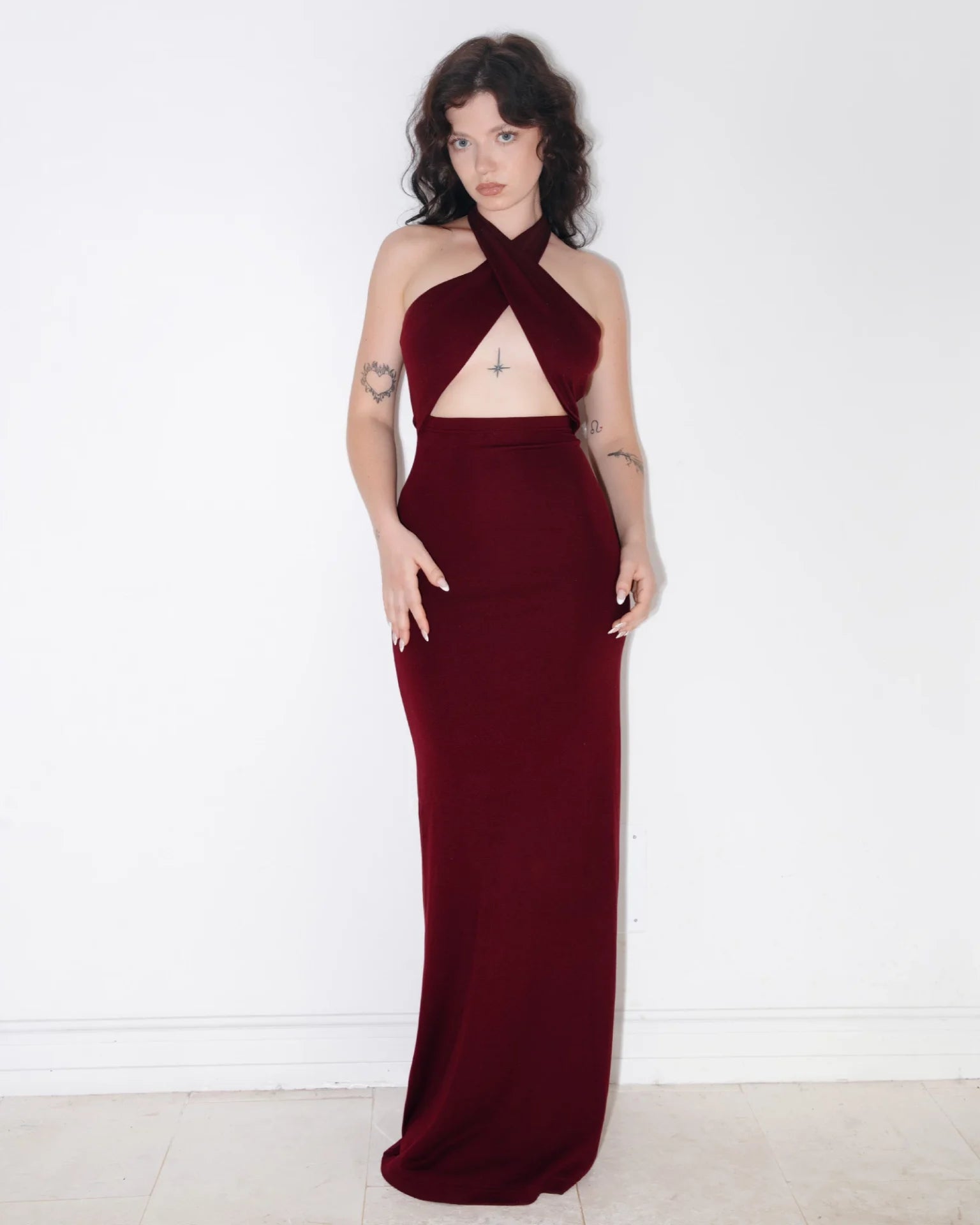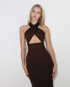 WRAP FRONT HALTER MAXI DRESS