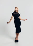Wyprodukowana w Polsce - sukienka MIDI z koronkowym dekoltem